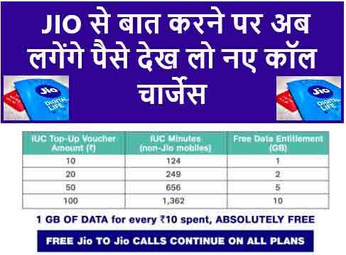 यह चार्जेस कितने होंगे और इसके लिए कौन सा रिचार्ज आपको कराना होगा इसकी जानकारी हम आपको नीचे देने जा रहे हैं यह चार्जेस लागू हो गए हैं और आपको अपने जियो मोबाइल पर इसका नोटिफिकेशन मिल गया होगा अगर आपके फोन में यह पैक नहीं है तो आप कॉल नहीं कर पाएंगे तो आप जल्दी जाकर यह रिचार्ज करा लें और अपनी सेवाओं को चालू रखें |